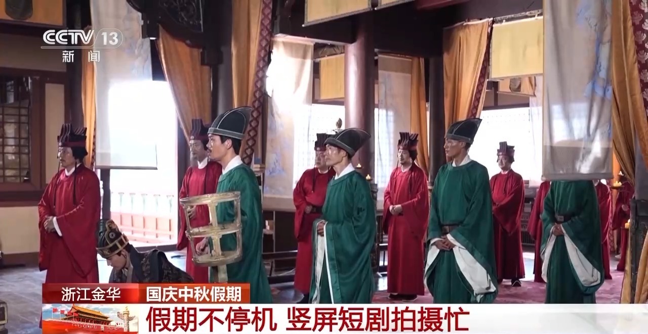 国庆中秋假期,浙江金华市横店影视立屏短剧拍摄持续火爆。 50多人同时工作,工作室状态齐全。